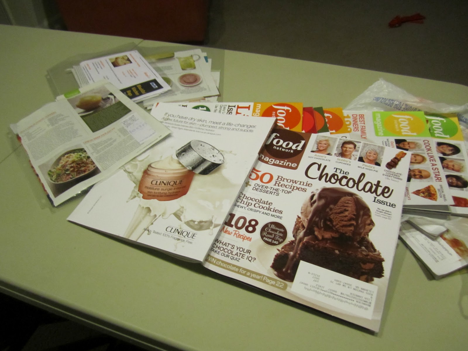 Finally getting around to doing one of those jobs that you talk about but put off because it's not urgent. So here is a stack of FoodNetwork magazines loaded with recipes I want to try- some day! I am cutting out the recipes I think I'll make because now I have a brand new stove to try them on. Having no family here, besides Lisa, makes it difficult to do test runs since if we don't care for it, there's no one to come over to push them on. Some of my family will eat anything that's free!
